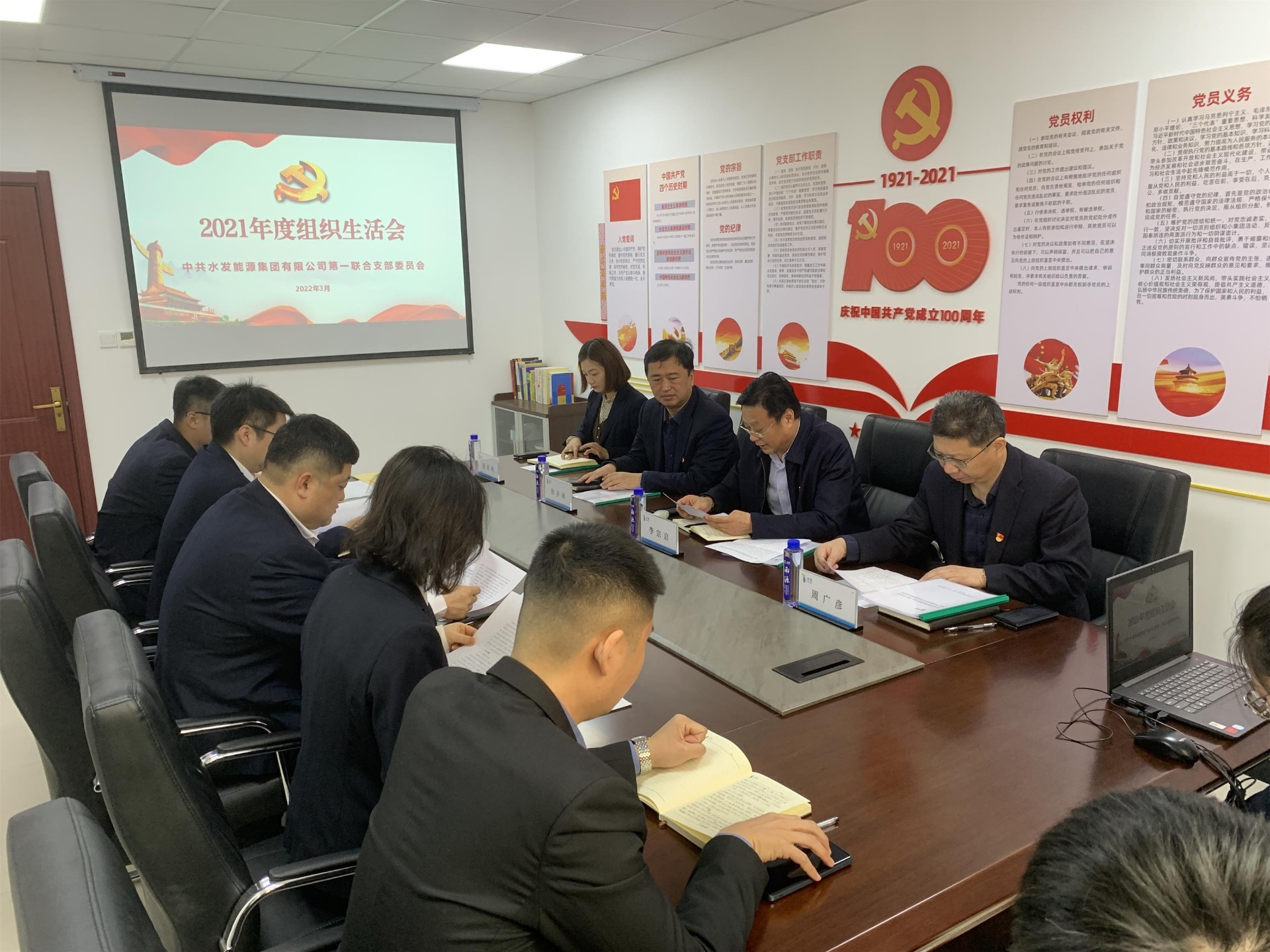 3月4日上午,水發(fā)能源第一聯(lián)合黨支部召開2021年度組織生活會(huì)和民主評(píng)議黨員工作。水發(fā)能源集團(tuán)黨委副書記李宗啟和黨委工作部同志現(xiàn)場(chǎng)參會(huì)并指導(dǎo),黨支部全體黨員參加。