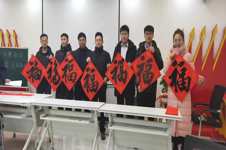 貼“?!弊?,是迎新春必不可少的傳統(tǒng)項(xiàng)目。每年年末,不少書(shū)畫(huà)藝術(shù)家都會(huì)走出書(shū)齋,以送“?!钡男问絹?lái)祈福新年。為弘揚(yáng)中華優(yōu)秀傳統(tǒng)文化,迎接新春佳節(jié)的到來(lái),近日,恒大名都社區(qū)黨支部邀請(qǐng)山東省商業(yè)職業(yè)技術(shù)學(xué)院書(shū)畫(huà)教研室曹懷義主任及多位社區(qū)書(shū)法愛(ài)好者走進(jìn)濟(jì)南幸福城小區(qū)揮毫潑墨,為居民送“福”到家。能源集團(tuán)機(jī)關(guān)黨員、入黨積極分子等20余人參加此次活動(dòng)。