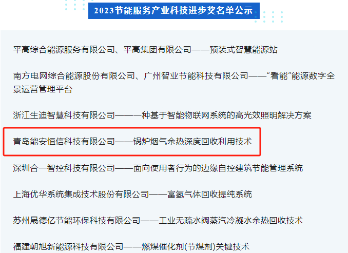 喜報 | 青島能安恒信公司榮獲中國節(jié)能協(xié)會2023節(jié)能服務產業(yè)企業(yè)貢獻獎和科技進步獎