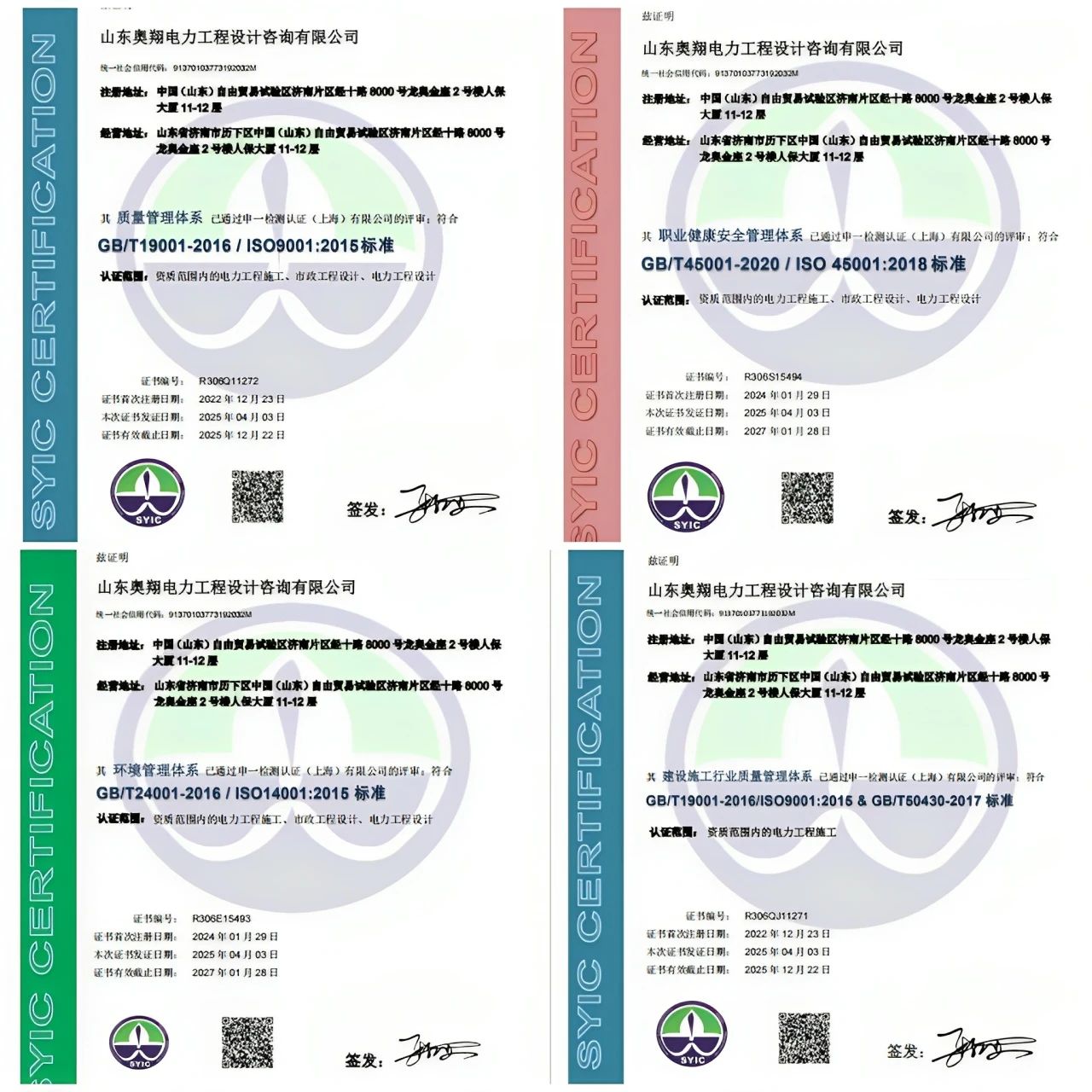 山東奧翔電力工程設(shè)計咨詢有限公司順利通過ISO三體系及GB/T 50430認證